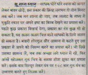 बैठ जाएं और ५ मिनट तक सद्गुरु का भू मध्य ध्यान करें।