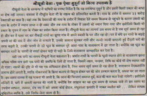 गौधूली वेला के सम्बन्ध में ऋषियों का स्पष्ट निर्देश है कि यह सर्वश्रेष्ठ मुहूर्त है और इसमें किसी प्रकार की बाधा